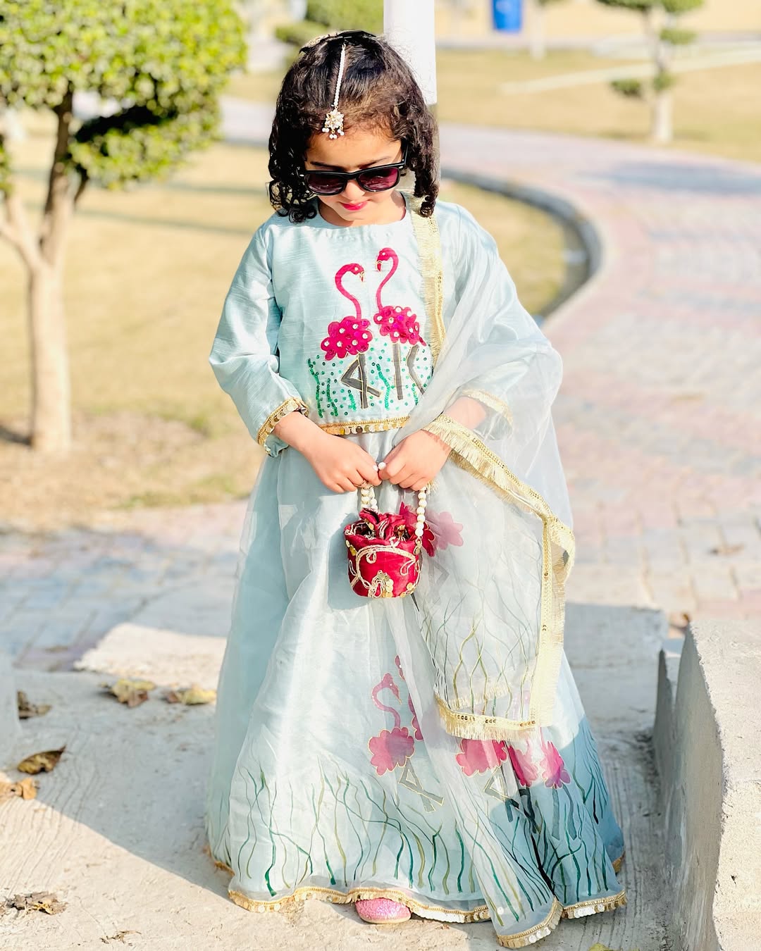 Hand-Painted Flamingo Lawn Set – Stylish Plazo Pants for Kids
